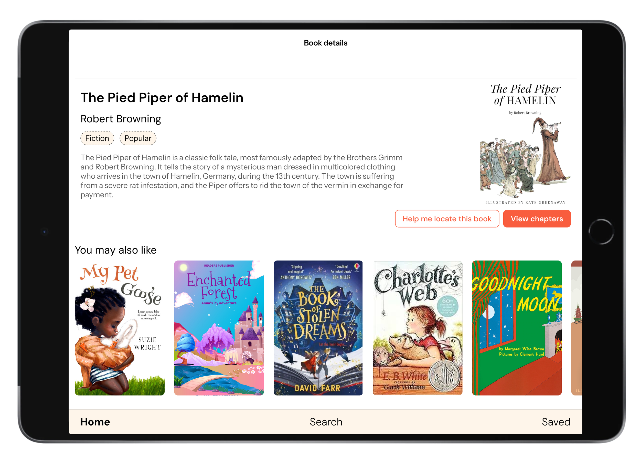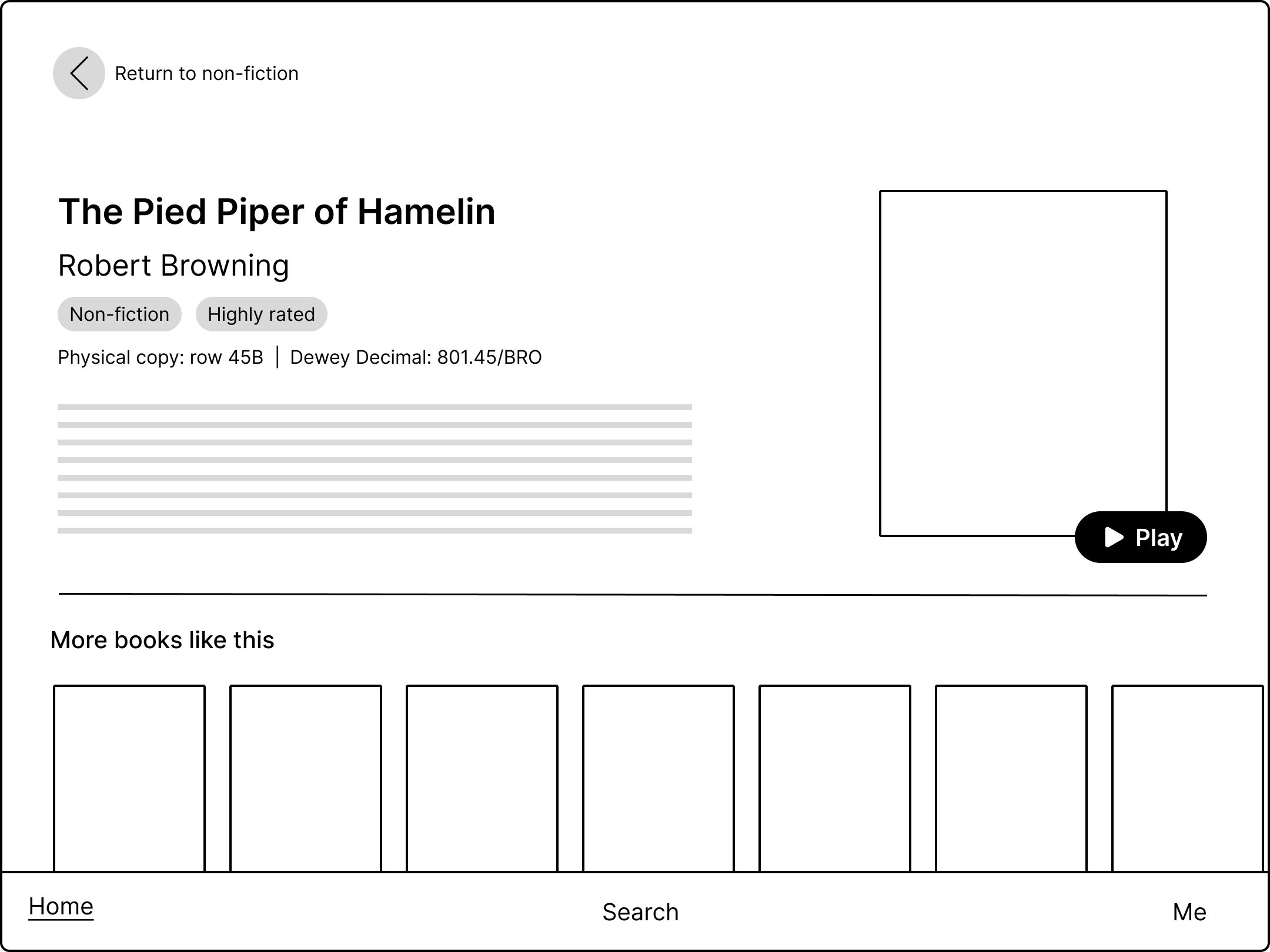 Our target user, Jake, wants to make the library experience more interactive. Encouraging the young listener to pair the tablet UX with a physical book offers the best of both worlds.