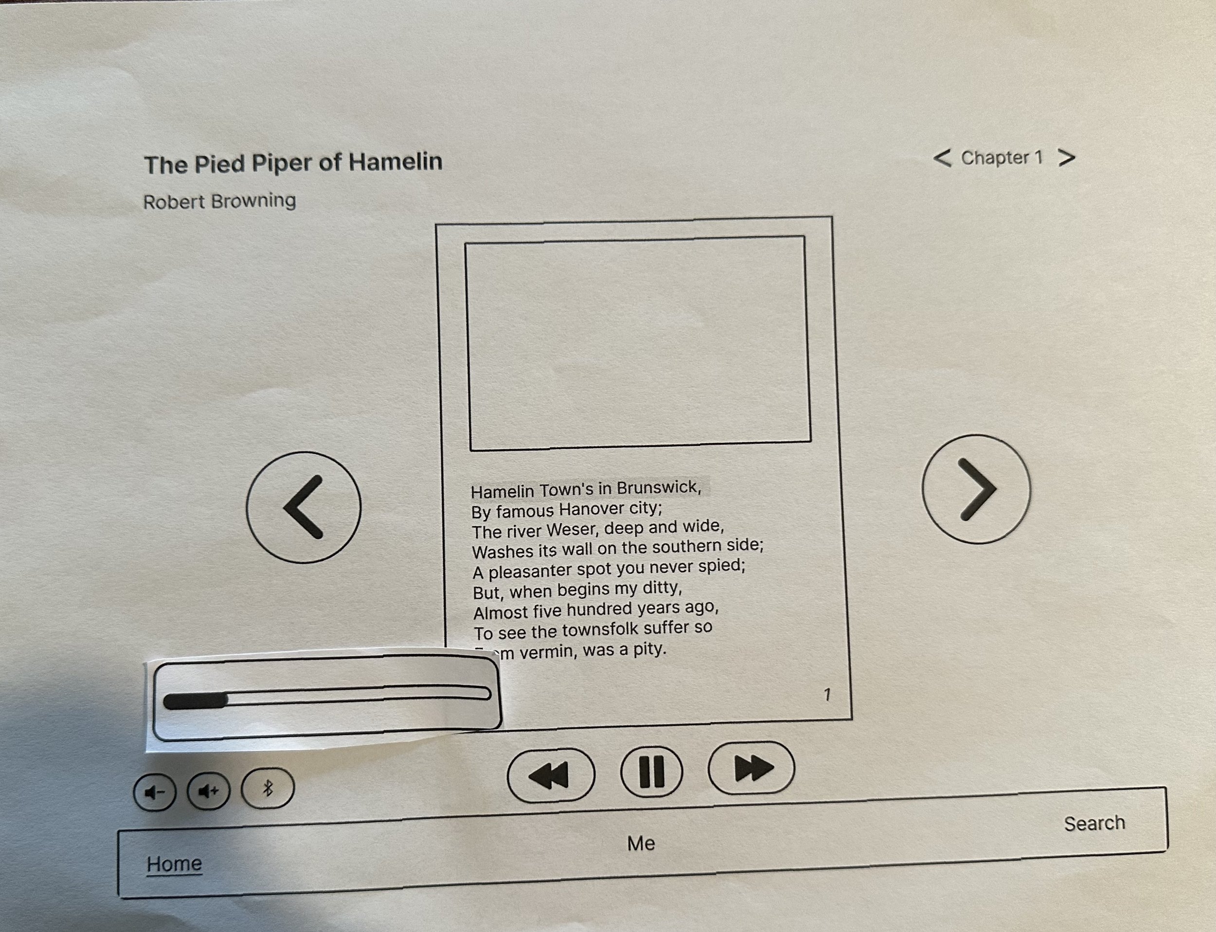 Audio-based UI, no individual pages to limit scope and encourage interaction with physical books
